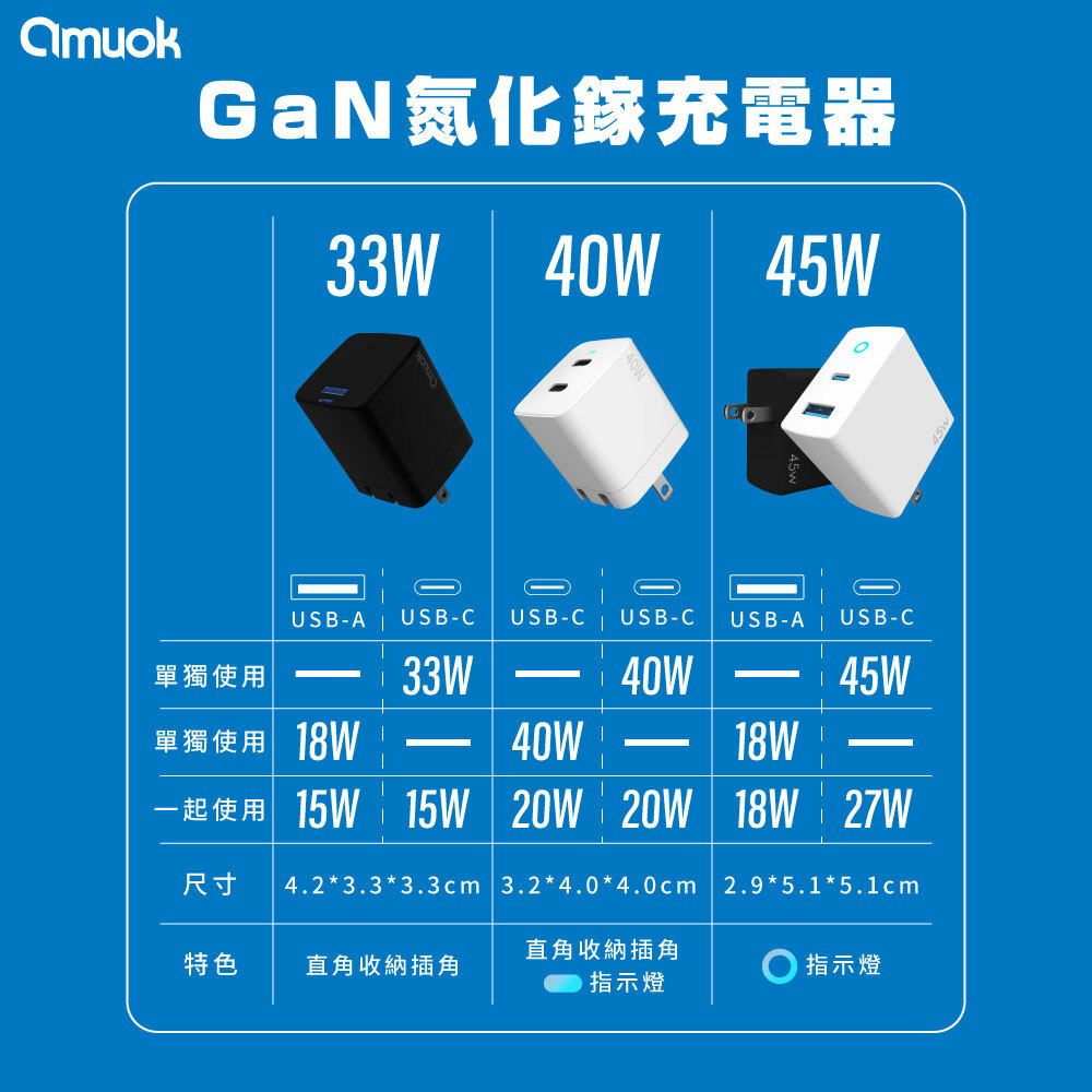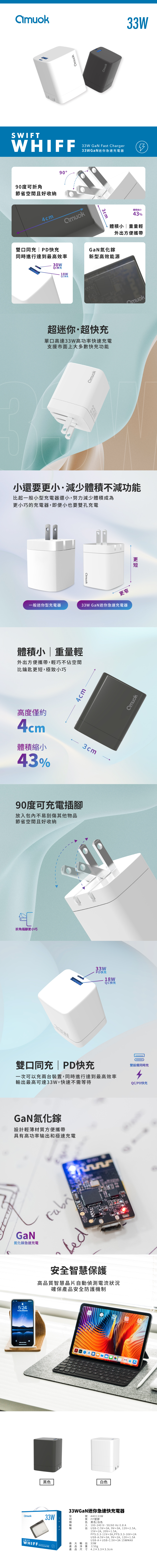 【amuok】33W GaN迷你急速充電器PD+QC