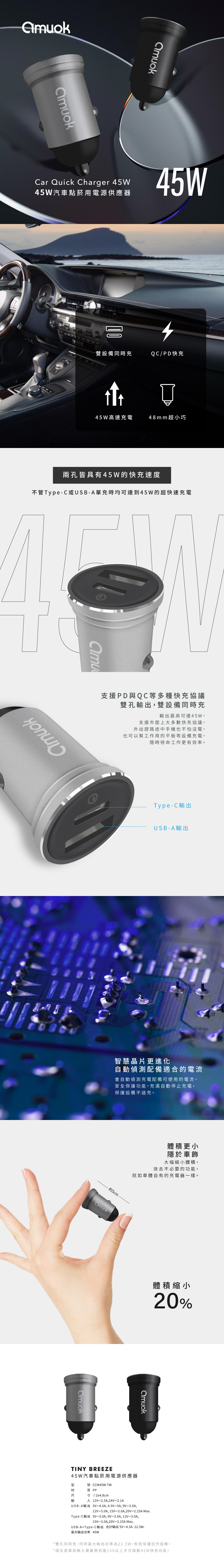 商品名稱:amuok 汽車點菸用電源應器(45W)