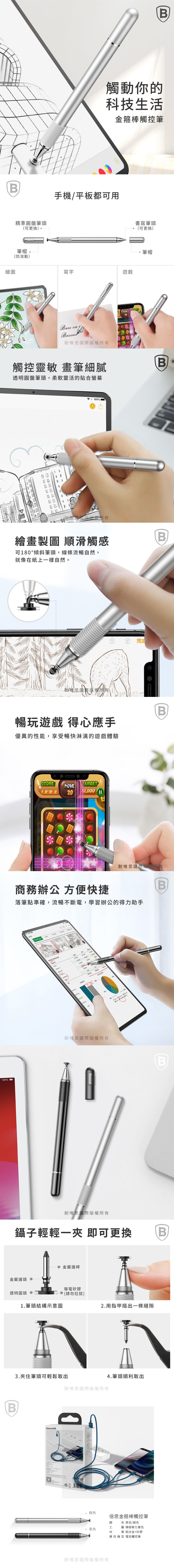 優雅和耐用性。 圓珠筆包含一個高質量的凝膠筆芯和一個劃線器的末端,它提供了移動設備的精確操作(例如手寫、繪圖、播放)。 靈活的矽膠末端具有抗彎曲性和安全性,適用於 iPAD