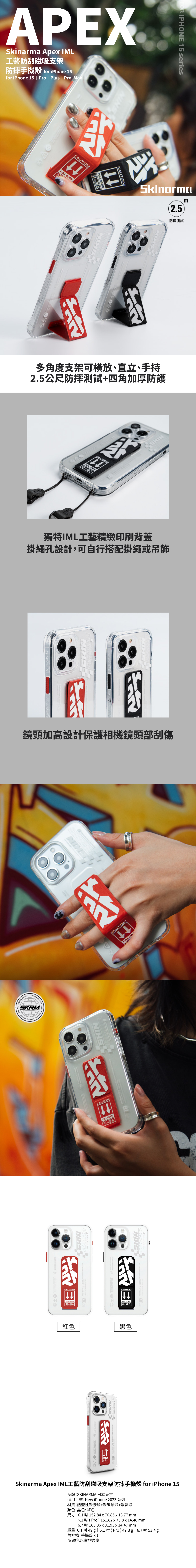 【Skinarma】iPhone 15 系列 Apex IML工藝防刮磁吸支架防摔手機殼