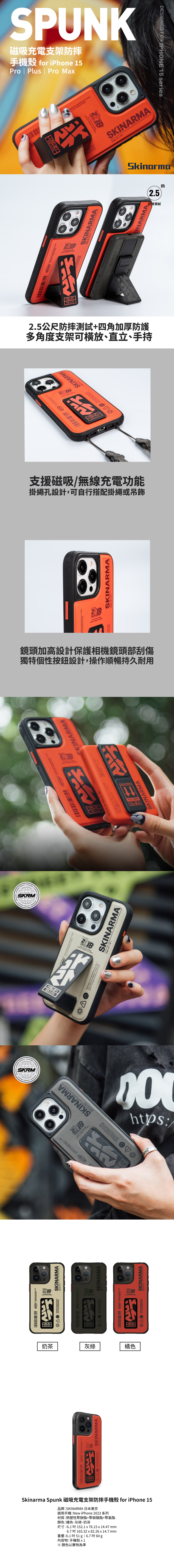 【Skinarma】iPhone 15 系列 Spunk 磁吸充電支架防摔手機殼