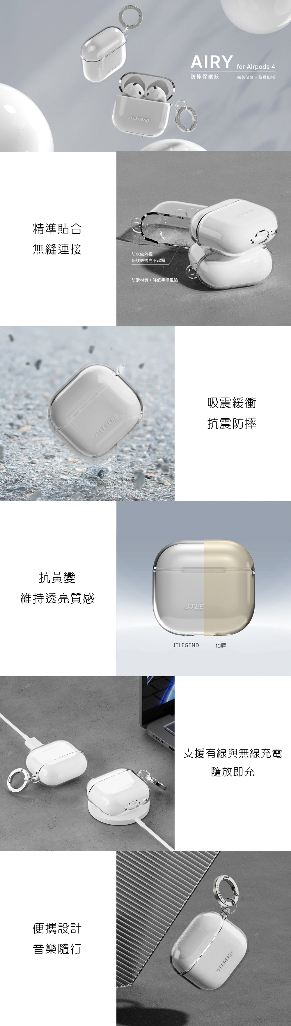包裝內容物:JTLEGEND Airpods 4 Airy 防摔保護殼x1, D型環x1