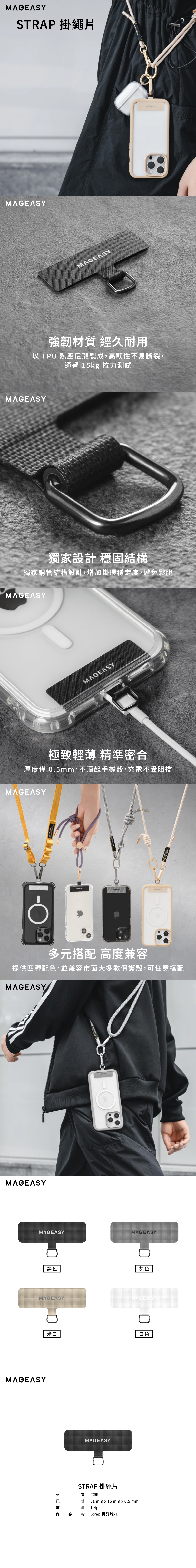 ● 熱壓尼龍製成,高韌性不易斷裂,通過15KG拉力測試
