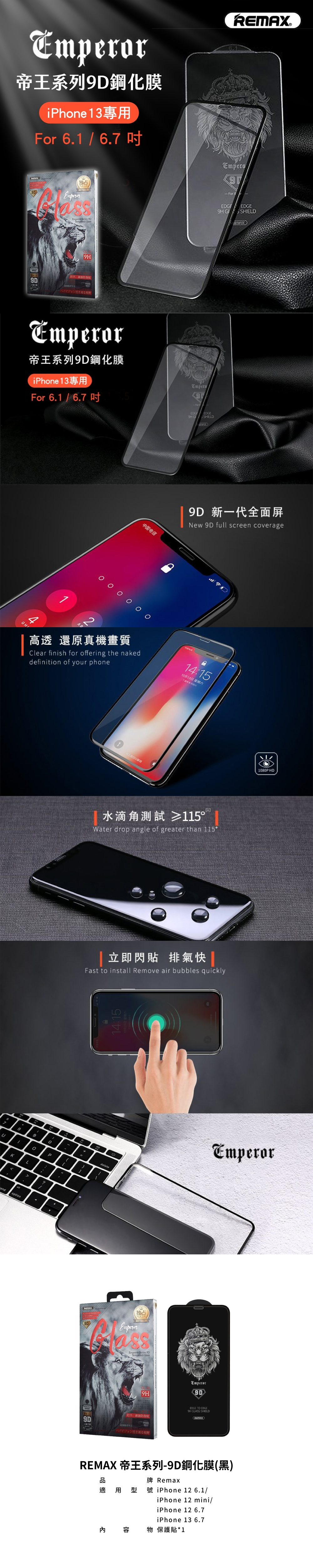 【REMAX】帝王系列 9D鋼化膜 iPhone