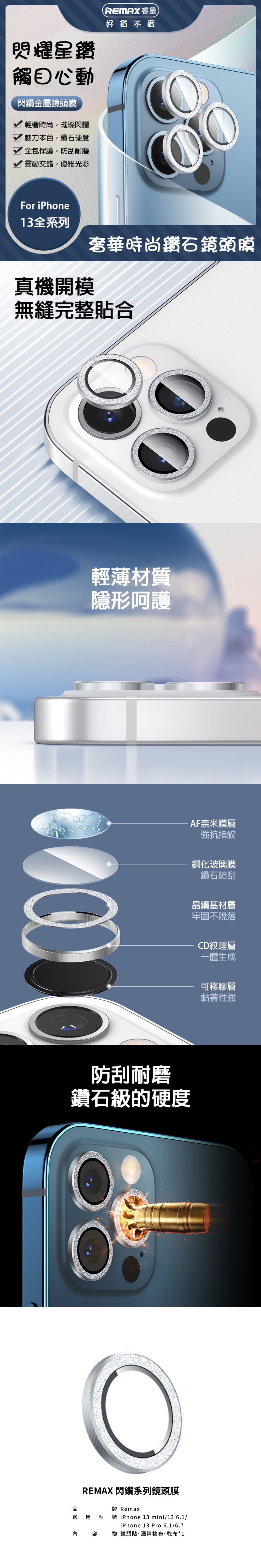 【REMAX】閃鑽系列 鏡頭膜 iPhone 13