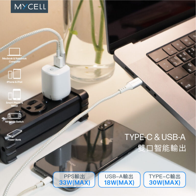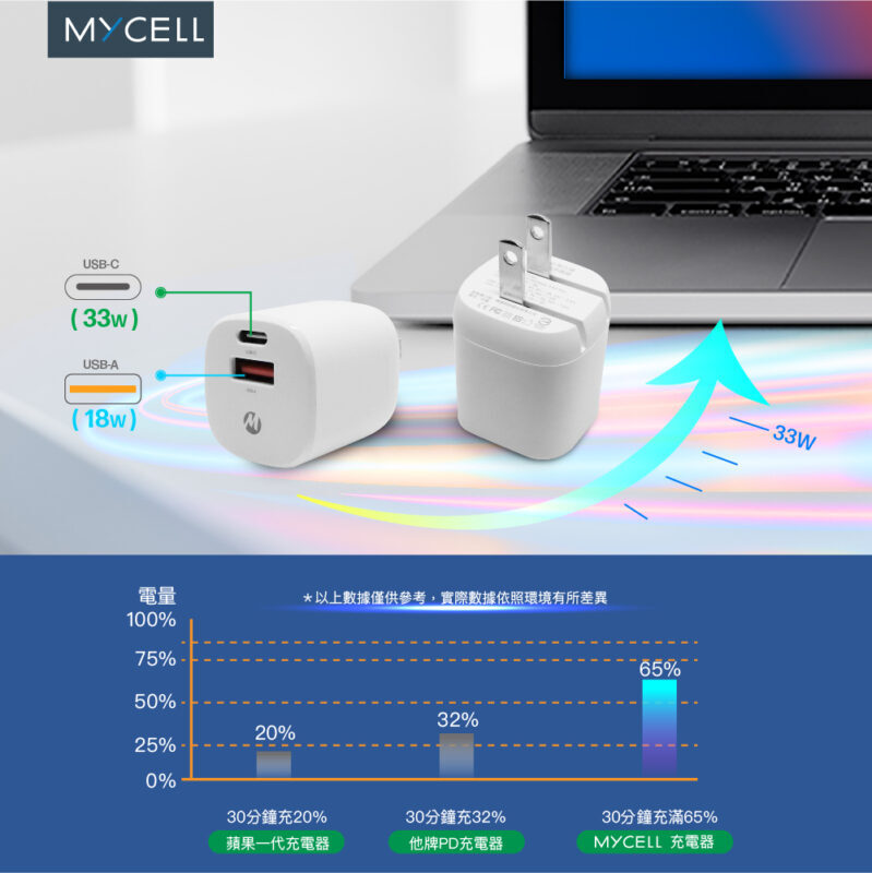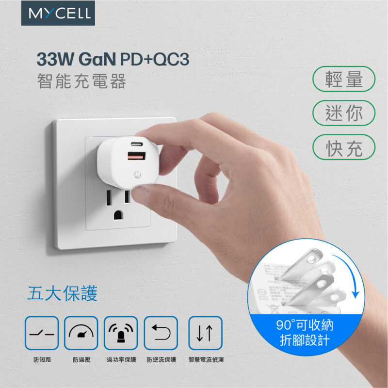【MYCELL】33W 氮化鎵PD&QC3智能充電器