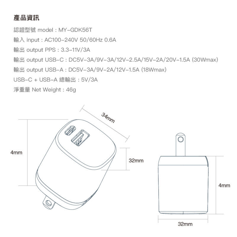 ● 超小體積,摺疊插腳