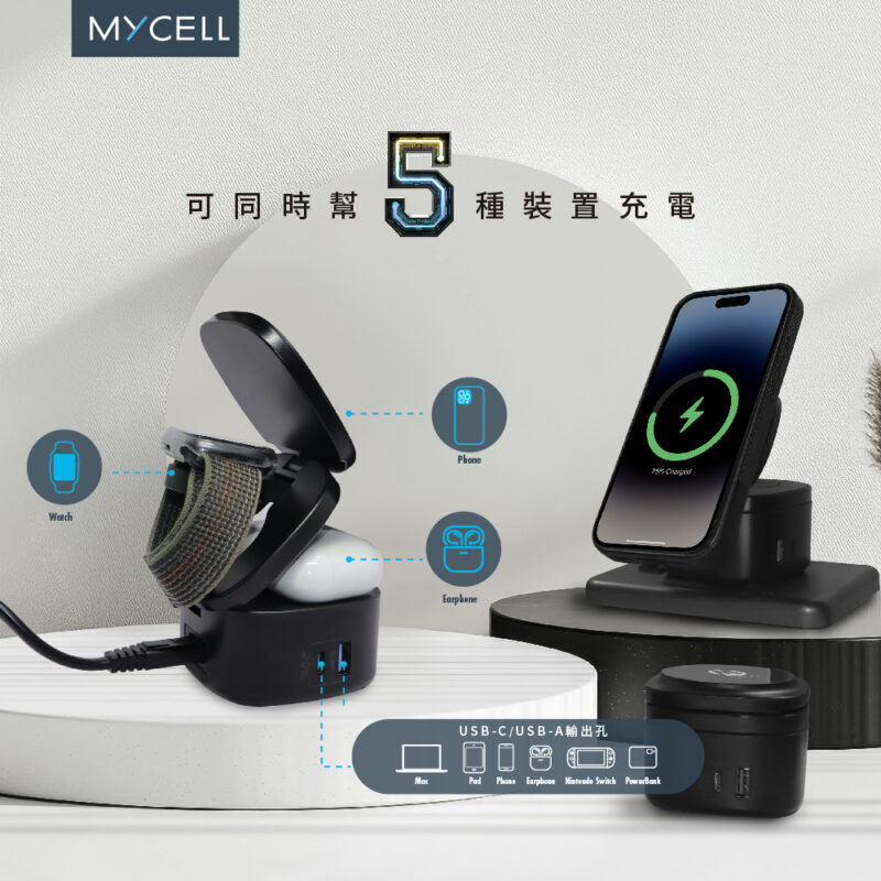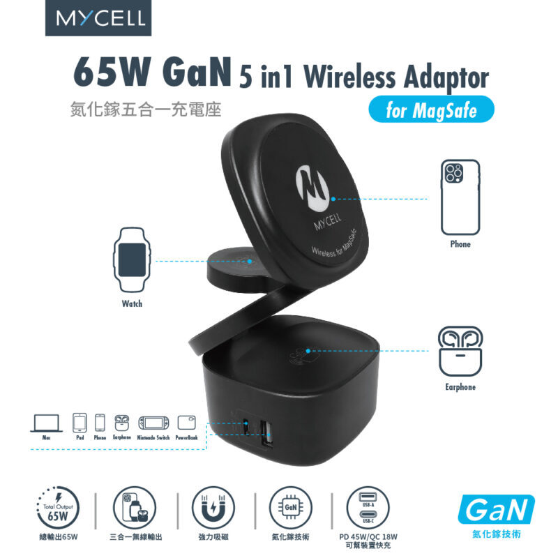 【MYCELL】65W GaN 5in1 磁吸式無線充電器