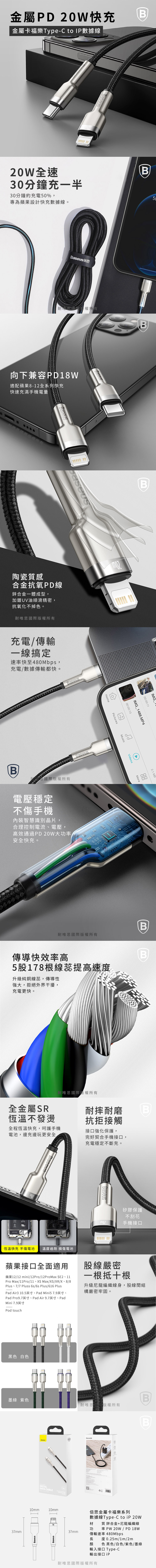 【Baseus倍思】20W金屬卡福樂 Type-C to IOS 快充數據線