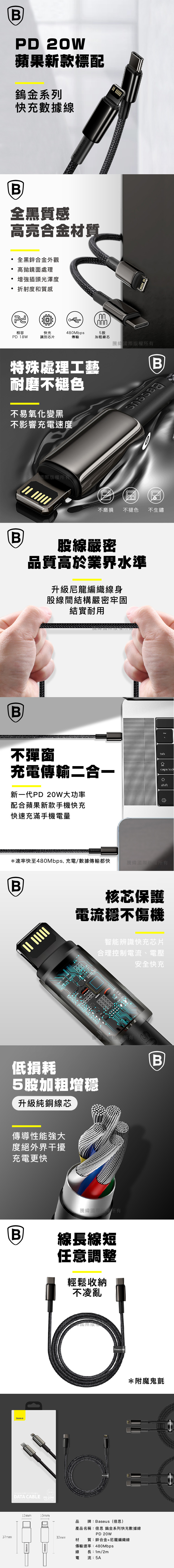 【Baseus倍思】鎢金系列 Type-C to IOS 快充數據線 20W